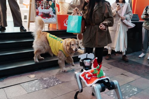 在西岸夢(mèng)中心,顧客與機(jī)器狗“小麥”上演漫步街頭,這一充滿未來(lái)感的畫(huà)面,不僅吸引了路人駐足拍照,更引發(fā)了現(xiàn)場(chǎng)遛狗者的特別關(guān)注——傳統(tǒng)寵物與機(jī)械伴侶同框,勾勒出一幅科技融入日常生活的生動(dòng)圖景。